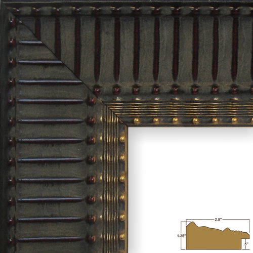Description of 20x30 Picture / Poster Frame, Weathered Ornate Finish, 2.5" Wide, Aged Mahogany with Gold (6601) :