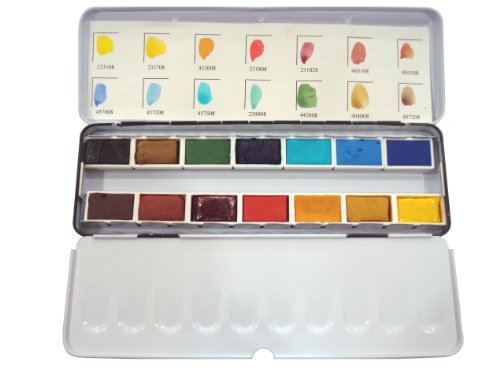 - Watercolor box, with 14 full pans, with ring thumb holder. Very lightfast, 100% pure pigment.