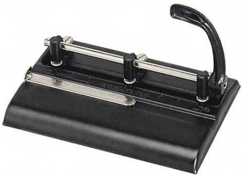 3-Hole punch that has a lever handle for your punching to be easier. It punches through up to 32 sheets of 20 lb. bond paper. The adjustable punch heads for a choice of 2 or 3 hole punching makes it easy for you to punch for different binder sizes.