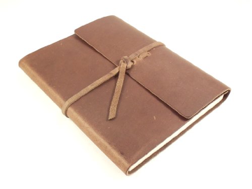 - Unique rustic leather writing notebook with wrap tie closure.